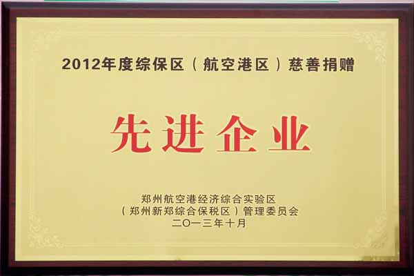 瑞光包裝公司長期積極關(guān)注和致力于社會公益事業(yè),日前被鄭州航空港經(jīng)濟綜合實驗區(qū)( 鄭州新鄭綜合保稅區(qū))管理委員會授予“2012年度綜保區(qū)(航空港區(qū))慈善捐贈先進企業(yè)”榮譽稱號。