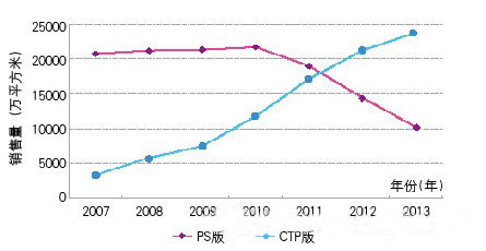 CTP版與PS版銷售總量對(duì)比: