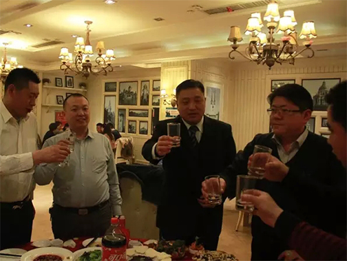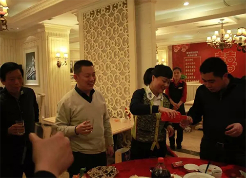 瑞光物資公司總經(jīng)理?xiàng)盥方芟壬鸀閱T工敬酒