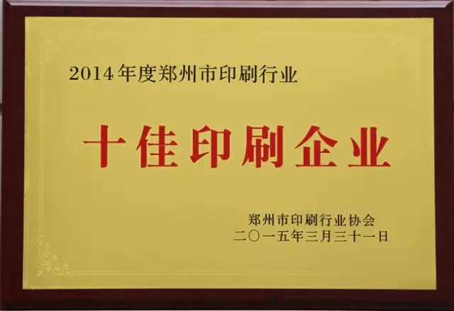 賀:瑞光印務(wù)榮獲2014年度鄭州市印刷行業(yè)十佳印刷企業(yè)