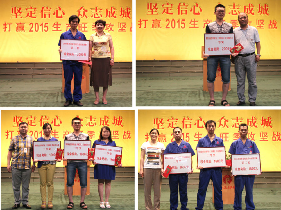 第三項,瑞之光集團領(lǐng)導及瑞光印務(wù)領(lǐng)導為“第四屆全國印刷行業(yè)職業(yè)技能大賽”和“2014河南省包裝行業(yè)平版印刷工、印前制作員、印品整飾員技能競賽”獲獎?wù)哳C發(fā)獎金。