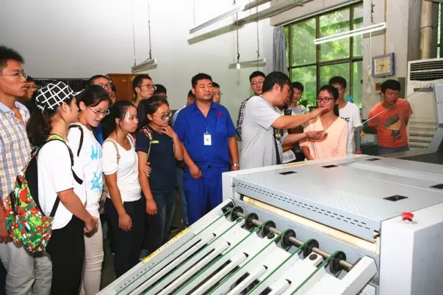 9月2日上午10點,鄭州大學(xué)材料科學(xué)與工程學(xué)院包裝工程專業(yè)35名大三學(xué)生,在曹老師的帶領(lǐng)下來到河南省瑞光印務(wù)股份有限公司參觀見習。瑞光印務(wù)質(zhì)檢部薛經(jīng)理陪同曹老師與同學(xué)們一起參觀了設(shè)計制版、彩印、裝訂等車間。