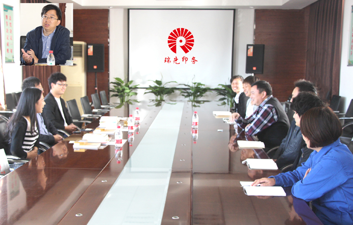 瑞光印務(wù)王總對(duì)喬總的到來(lái)表示熱烈歡迎,并向喬總介紹參加此次交流會(huì)的公司領(lǐng)導(dǎo),就集團(tuán)公司基本情況做簡(jiǎn)要介紹。通過(guò)現(xiàn)場(chǎng)的分享與交流,喬總對(duì)瑞光印務(wù)的網(wǎng)絡(luò)宣傳推廣和鄭州瑞光傳播公司的發(fā)展方向及產(chǎn)品營(yíng)銷(xiāo)策劃給予指導(dǎo)和建議。隨后,王總陪同參觀瑞光印務(wù)生產(chǎn)車(chē)間,并對(duì)現(xiàn)場(chǎng)生產(chǎn)情況與主要設(shè)備進(jìn)行講解。