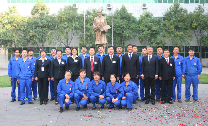 集團(tuán)領(lǐng)導(dǎo)與“瑞光之歌”比賽第一名河南瑞光創(chuàng)意印刷文化產(chǎn)業(yè)有限公司員工合影留念