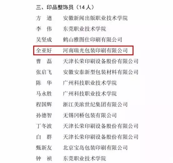 近日,國家新聞出版廣電總局發(fā)布《關于表彰2016年中國技能大賽——第五屆全國印刷行業(yè)職業(yè)技能大賽優(yōu)秀選手的決定》,河南瑞之光印刷股份有限公司員工全亞好同志榮獲該次大賽職工組印品整飾員優(yōu)秀獎,同時也是河南省職工組唯一獲獎選手。