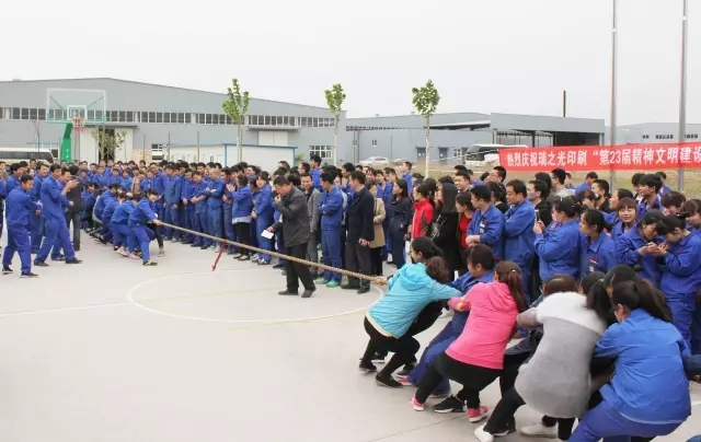 4月25日下午,河南瑞之光文化產(chǎn)業(yè)集團(tuán)、河南瑞之光印刷股份有限公司第23屆精神文明建設(shè)活動(dòng)月體育競(jìng)技活動(dòng)在河南創(chuàng)意印刷包裝產(chǎn)業(yè)園區(qū)(武陟園區(qū))圓滿完成。體育競(jìng)技活動(dòng)包括集體跳繩、拔河等比賽項(xiàng)目。整個(gè)活動(dòng)組織有序、氣氛熱烈;參賽者認(rèn)真比賽,爭(zhēng)創(chuàng)佳績(jī);觀眾們搖旗吶喊,助威加油。開(kāi)展精神文明建設(shè)活動(dòng)月體育競(jìng)技活動(dòng)豐富了職工文化生活,增強(qiáng)了團(tuán)隊(duì)的凝聚力,推進(jìn)了企業(yè)文化建設(shè)的持續(xù)發(fā)展,展現(xiàn)了瑞之光文化產(chǎn)業(yè)集團(tuán)職工健康向上的精神風(fēng)貌。