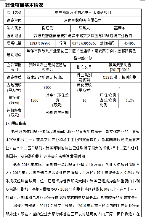 河南新魏印務(wù)有限公司年產(chǎn)900萬(wàn)平方米書刊印刷品項(xiàng)目