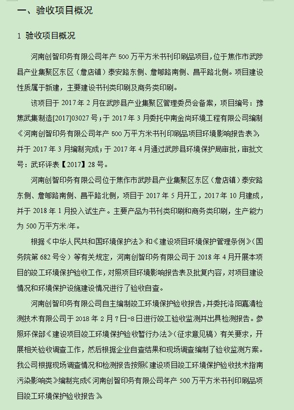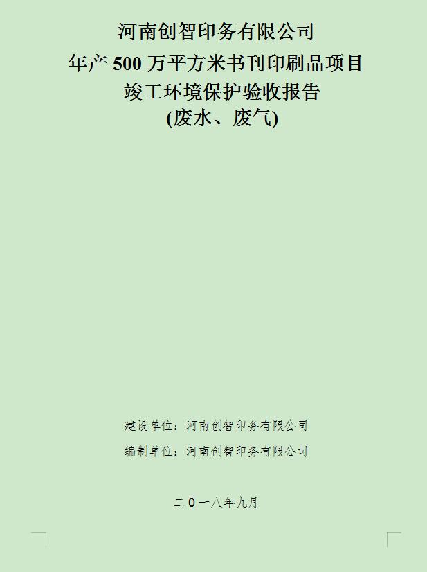 河南創(chuàng)智印務有限公司 書刊印刷品項目竣工環(huán)境保護驗收報告