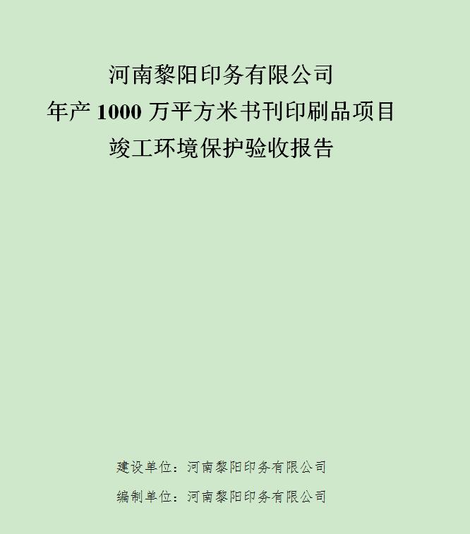 河南黎陽(yáng)印務(wù)有限公司書(shū)刊印刷品項(xiàng)目竣工環(huán)境保護(hù)驗(yàn)收?qǐng)?bào)告