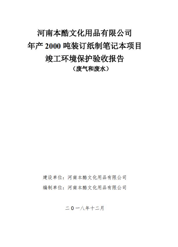本酷文化年產(chǎn)2000頓筆記本項目竣工固廢與噪聲驗收報告