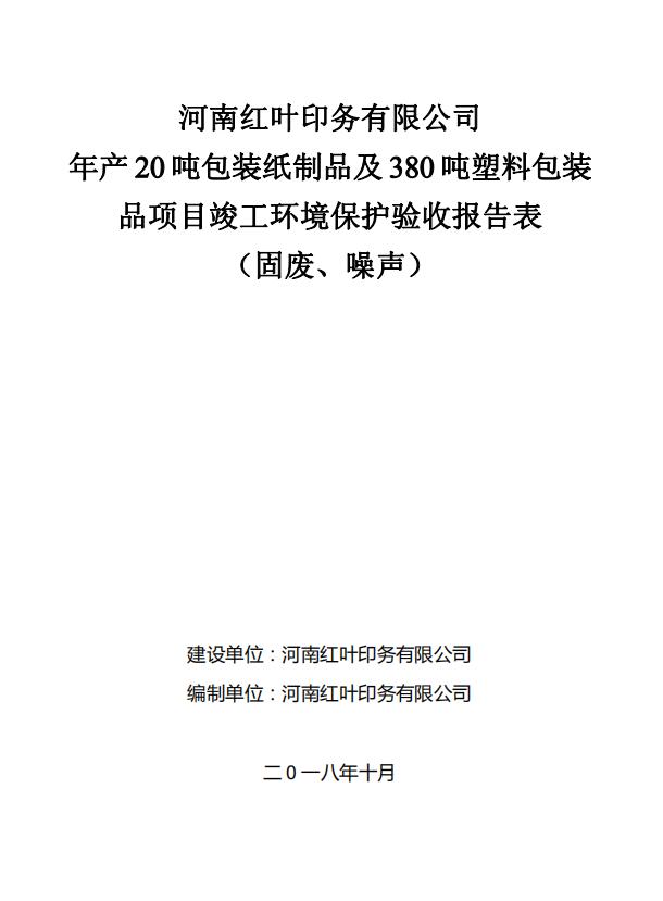 紅葉印務(wù)年產(chǎn)20噸包裝紙制品及380噸塑料包裝品項(xiàng)目竣工固廢環(huán)保驗(yàn)收?qǐng)?bào)告