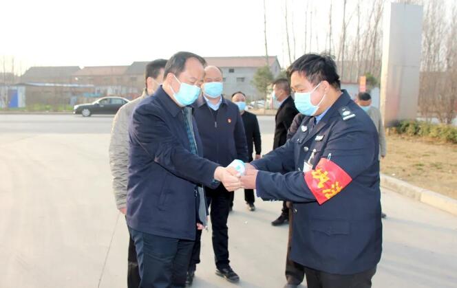 在廠區(qū)門口,各位領導經(jīng)過測體溫、消毒等防疫措施后,在王子峰董事長等人的陪同下,各位領導來到生產(chǎn)車間現(xiàn)場查看復工復產(chǎn)情況,并詳細詢問了防疫物資儲備、人員到崗、食宿安排、場所消毒等方面的工作。同時要求我公司要一手抓疫情防控,一手抓復工復產(chǎn),在確保疫情防控各項措施嚴格落地的前提下,搶抓市場機遇,統(tǒng)籌安排生產(chǎn),做好人員調配,想盡一切辦法將失去的寶貴時間搶奪回來,為武陟縣的經(jīng)濟發(fā)展貢獻力量。
